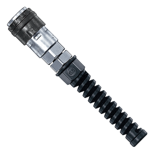 4. 也有“旋轉(zhuǎn)式螺帽快速接頭”,裝有滾珠式轉(zhuǎn)環(huán)防止軟管扭歪,可減輕手持負擔。