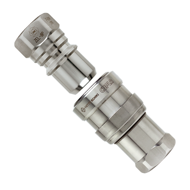 ●套筒、插塞皆有內(nèi)置閥門,可防止分離時(shí)流體的流出。操作容易。