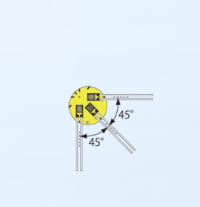 雙軸,3軸應(yīng)變片的顏色區(qū)分為雙線式時的0°: 紅色,90°: 白色,45°: 綠色